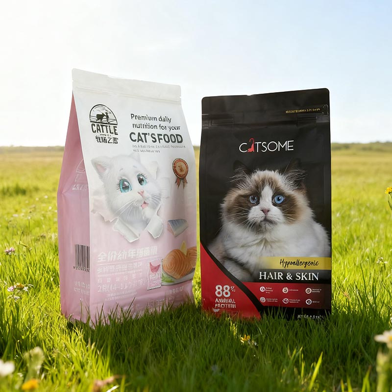 प्रश्न: झोला बलियो बन्द छ? A: भित्र प्रयोग गरिएको PE सामग्रीमा उत्कृष्ट सील प्रभाव छ, कडा सील सुनिश्चित गर्दै र बिरालोको खानालाई रोक्न।